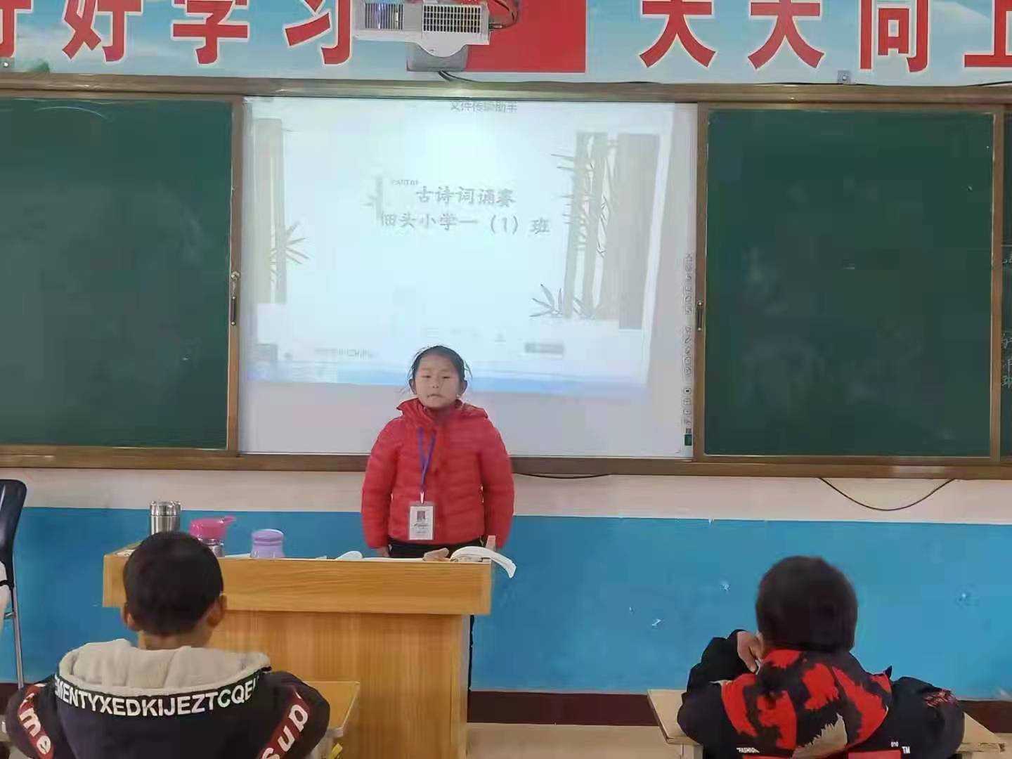 诵诗词美韵,沐国学芬芳。中华五千年浩瀚历史中,古诗词像是一颗璀璨的明珠,在国学星空中熠熠生辉。为传承和弘扬我国优秀传统国学文化,培养小学生的国学素养,激发学生热爱古诗词的兴趣,展示孩子们这一学期对古诗词的诵记成果,近日,济源市克井镇佃头小学举行了“诵千古诗词,扬传统文化”的古诗词背诵比赛。