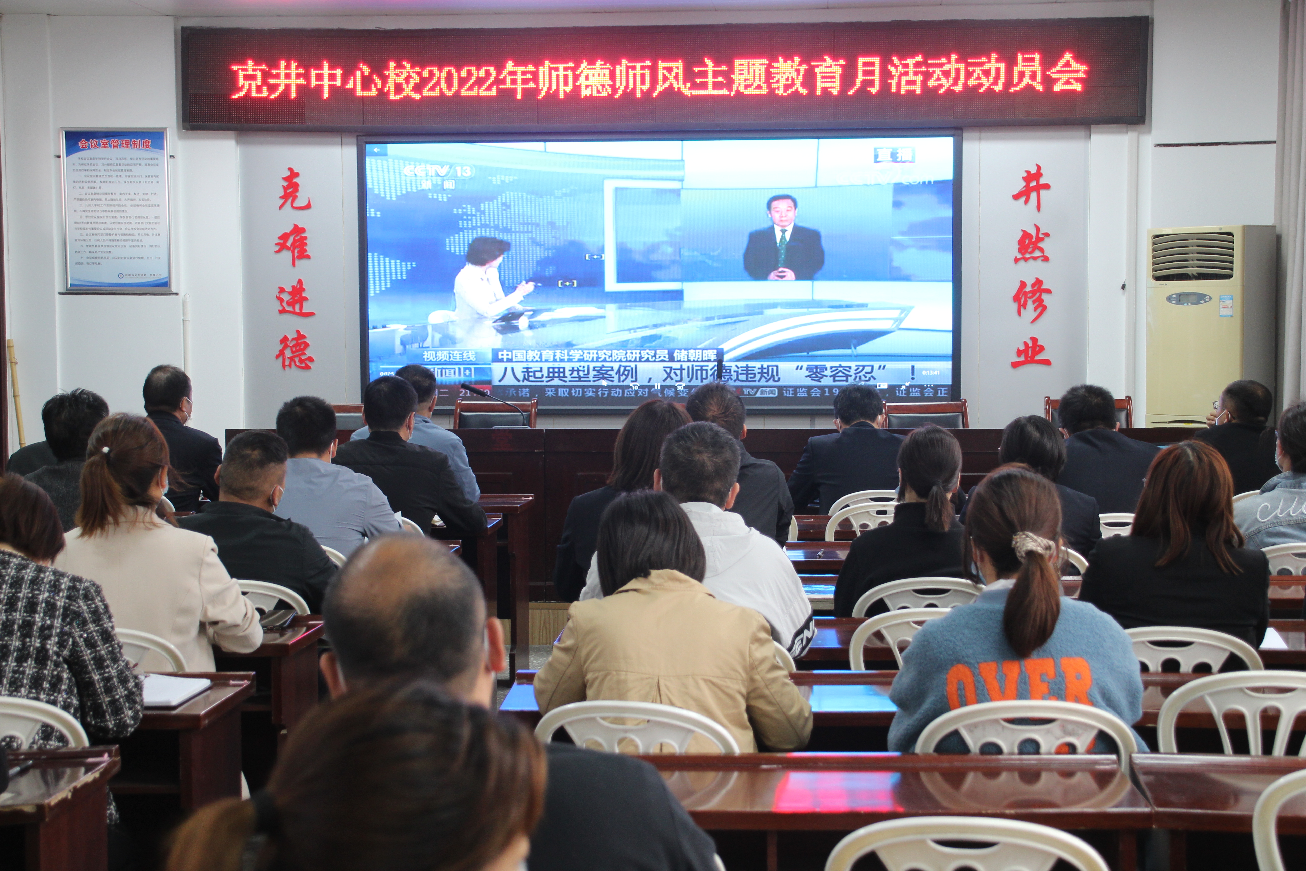 会上,与会人员观看了2021年4月央视播出的《[新闻1+1]八起典型案例,对师德违规“零容忍”!》的专题片;学习了《克井中心校关于开展“当好引路人 一起向未来”师德师风主题教育月活动的通知》《克井中心校师德师风十条红线》以及违反中小学教师职业行为十项准则典型案例、违反幼儿园教师职业行为十项准则典型案例。