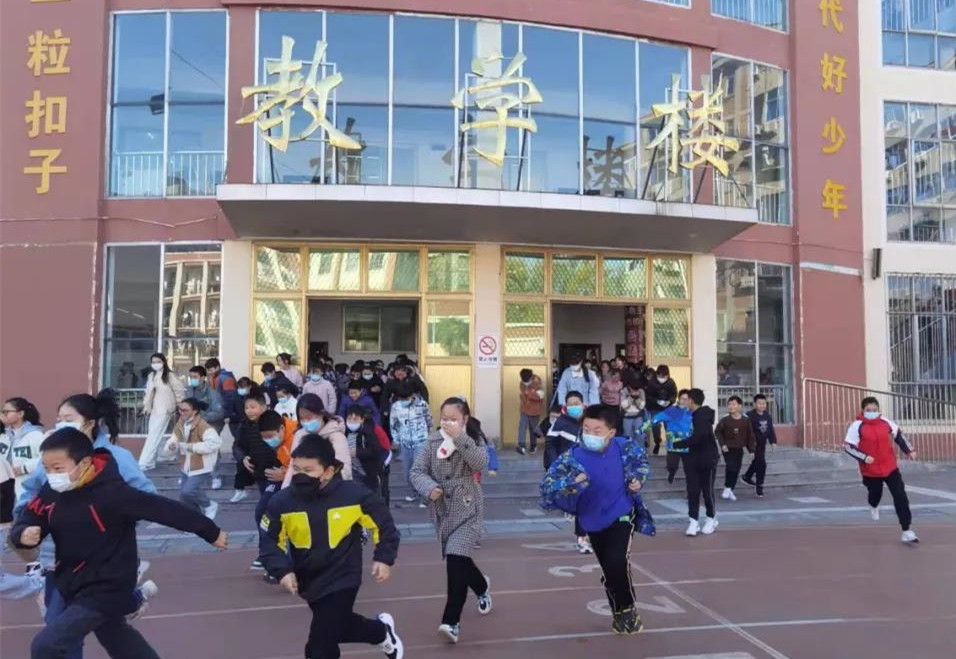 11月10日,该校师生进行了消防应急疏散演练活动。听到紧急的警报声,各班教师迅速按紧急预案的疏散线路带领学生拿起湿毛巾,捂住口鼻,躬着身子沿着楼道分两队从楼梯迅速且有序下楼。
