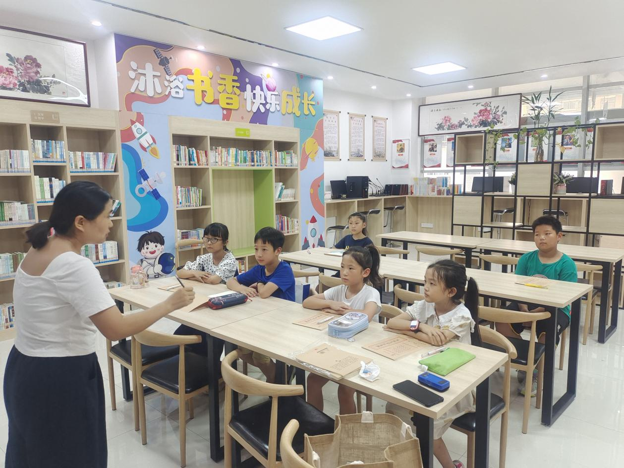 7月9日,洛阳市洛龙区古城街道龙祥社区开展的“七彩课堂,快乐暑假”公益课陆续开课。课堂以龙祥社区新时代文明实践站为中心,由新时代文明实践志愿者团队为近20余名社区未成年人提供为期40天的思想引领自护教育、学业辅导、硬笔书法、少儿口才等公益服务。