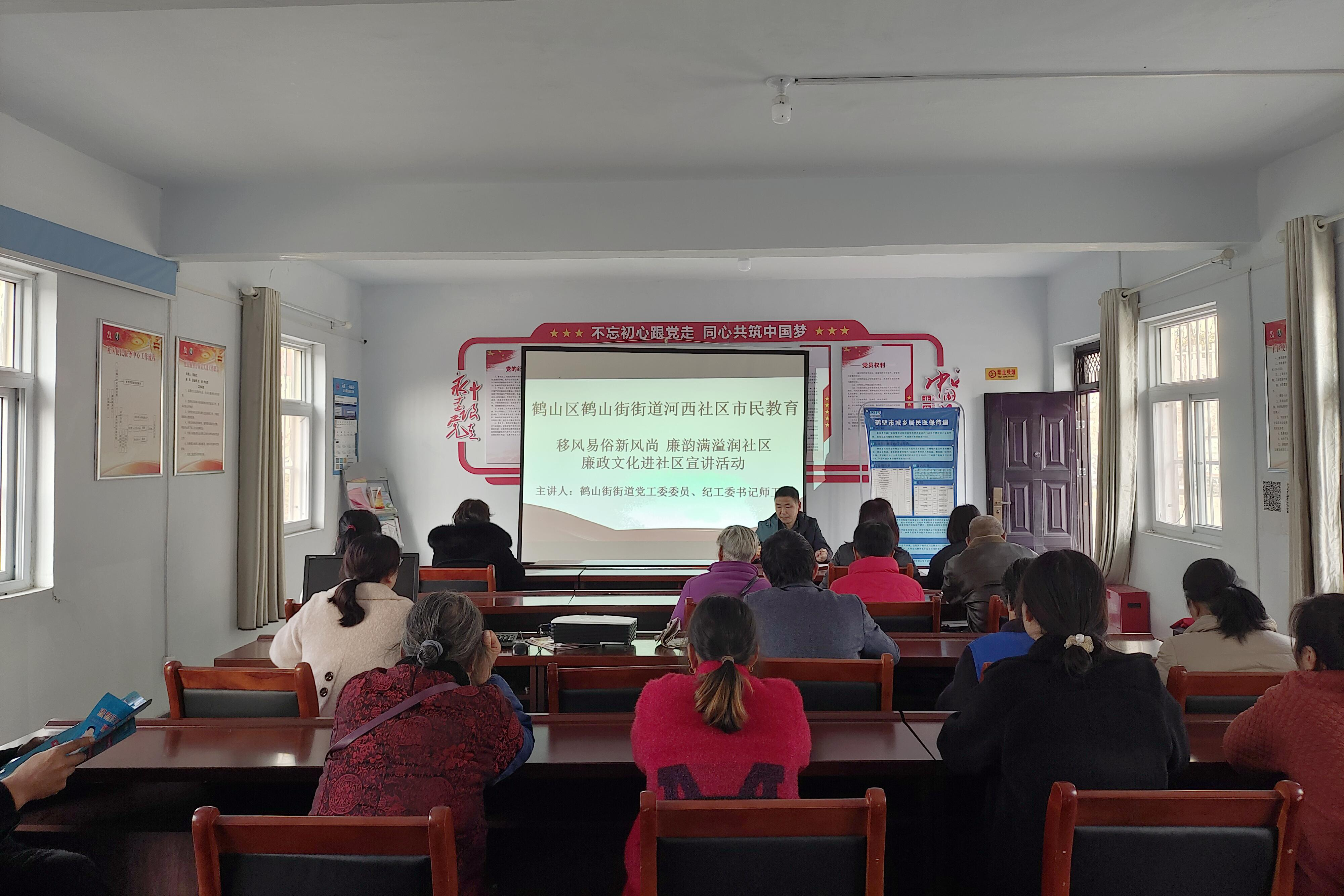 为进一步深入推进新时代廉洁文化建设、传承弘扬中华民族家庭美德,11月20日下午,鹤壁市鹤山区鹤山街街道河西社区开展“移风易俗新风尚、廉韵满溢润社区”的廉洁文化宣讲进社区活动。社区“两委”班子、党员、群众代表等到场聆听宣讲。