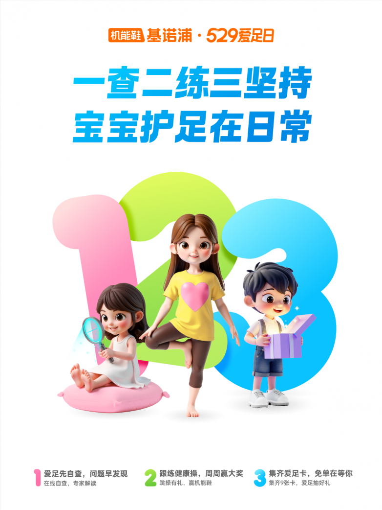 值此爱足日,中国儿童机能鞋领导品牌基诺浦推出创新服务。上线“AI居家验脚”功能,让家长足不出户即可做专业筛查,初步评估孩子的足弓发育、步态等关键足部情况。同时,基诺浦联合国家皮革和制鞋行业生产力促进中心,推出《基诺浦分龄儿童足部健康操》,该套健康操针对AI检测出的不同足部生长发育状况(如扁平足、足外翻倾向等),提供易于跟练的矫正训练方案。
