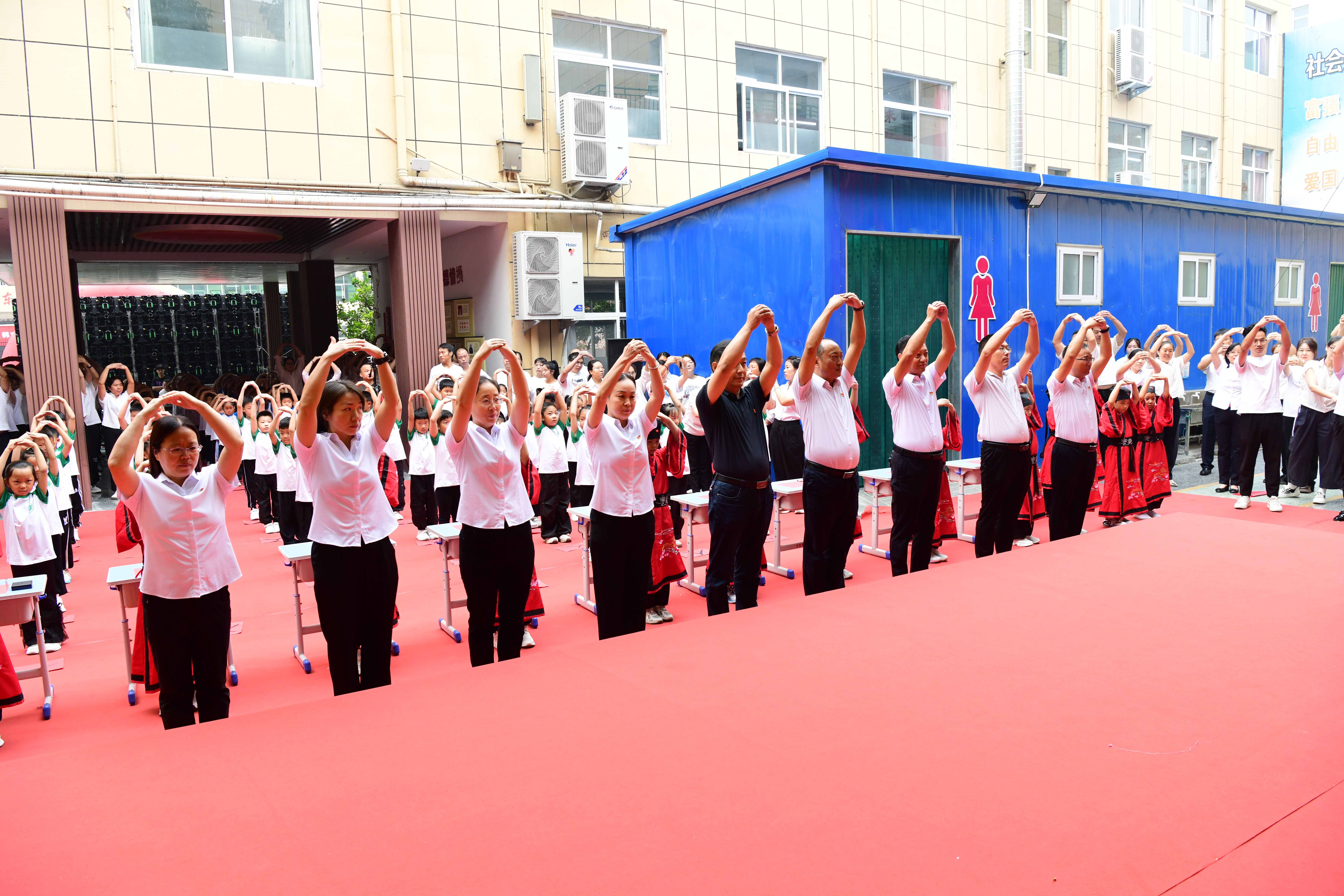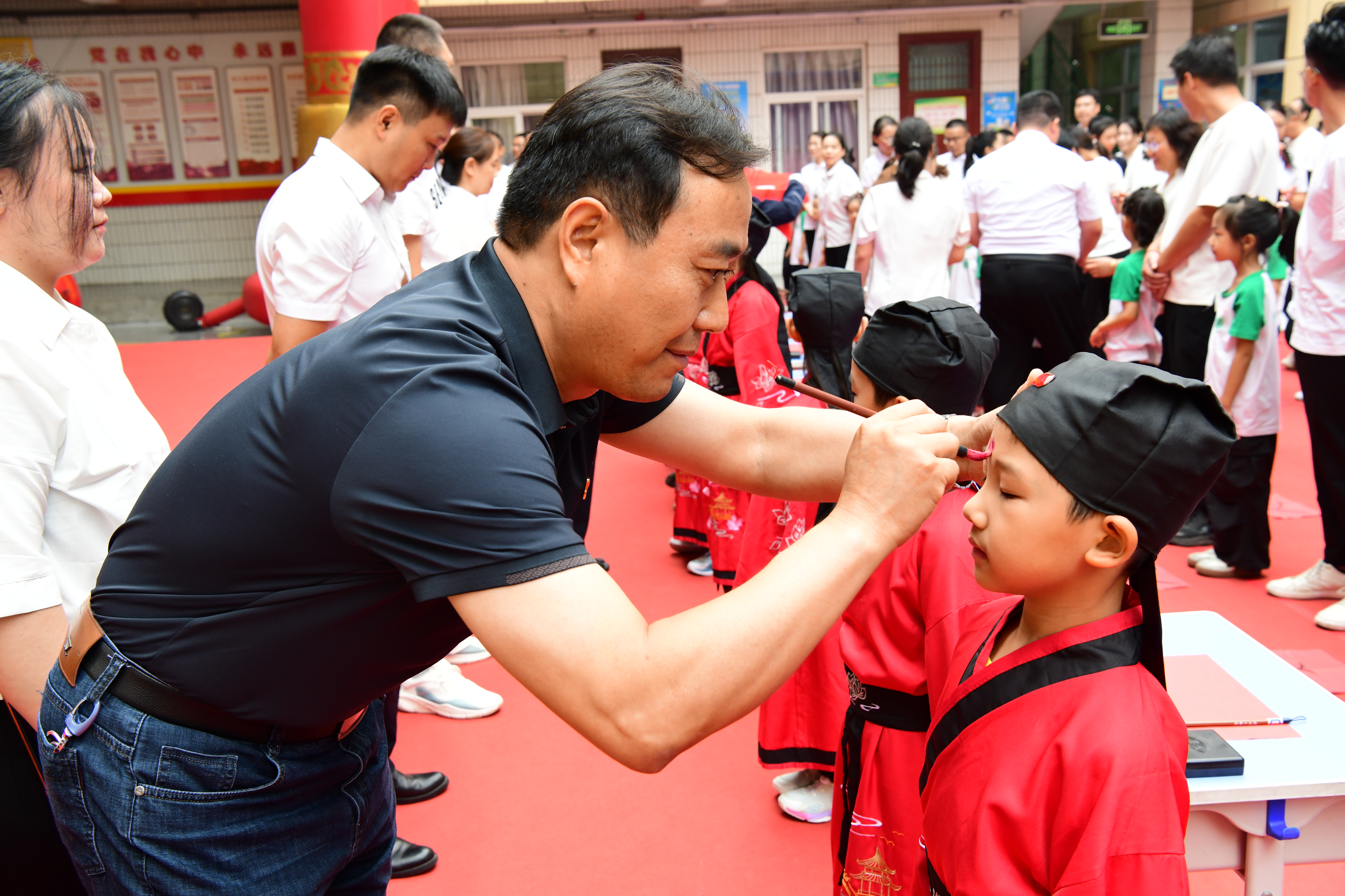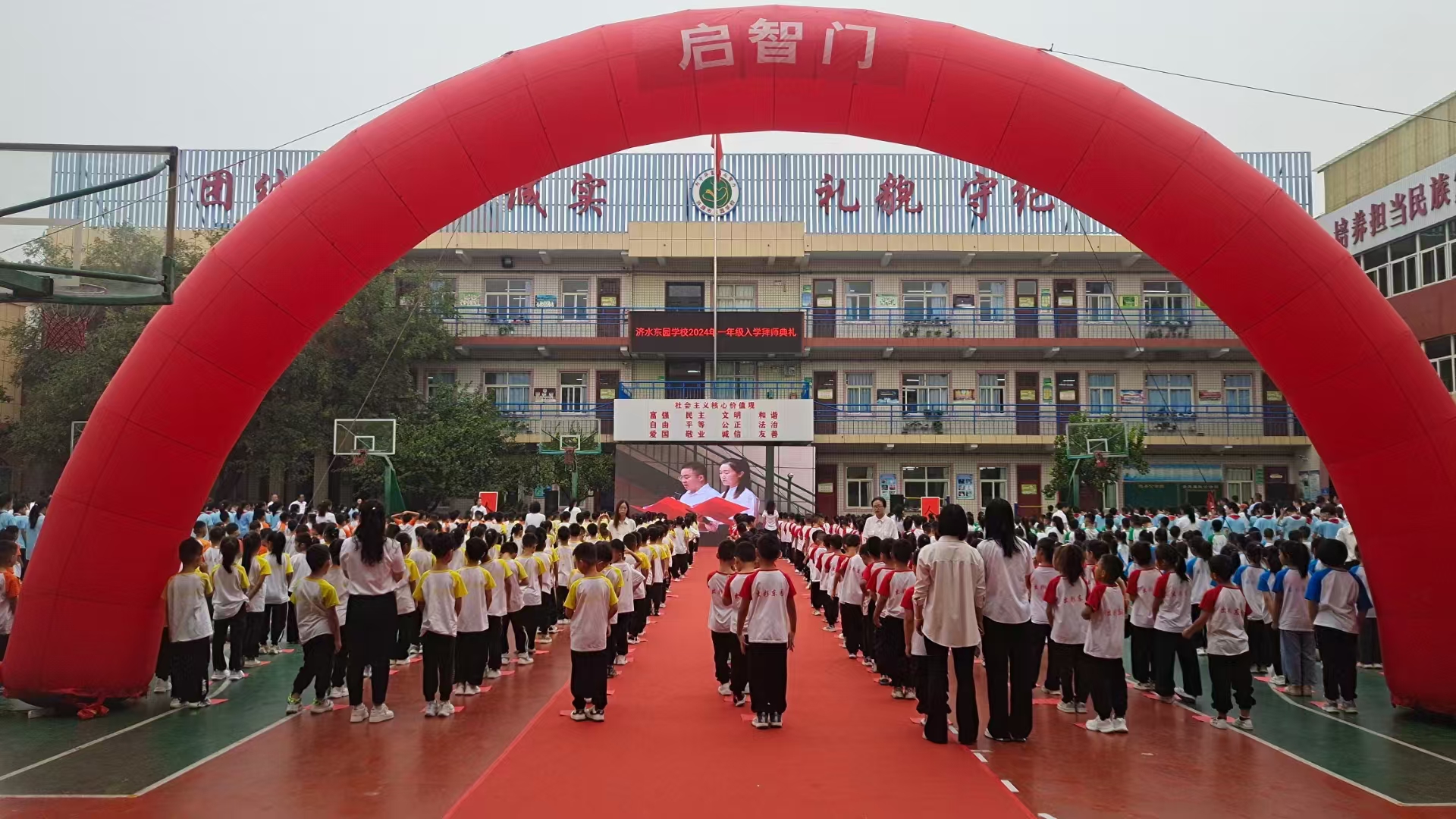 典礼共分为十一项,孩子们通过正衣冠、送吉祥、拜至圣先师孔子、拜老师、拜父母,感受到了“崇文尚学、尊师明礼”的中华传统美德;通过师长朱砂启智、校长击鼓明志、恩师启蒙描红、家长殷切嘱托等,新生学子们认识到,入学是人生中的一件大事,是开始奋发、走向成功的起点;通过诵读《弟子规》《少年中国说》,激励同学们珍惜读书机会,勤奋学习。活动最后,济水中心校李来军校长宣布济水东园学校2024级一年级新生入学拜师典礼圆满礼成。