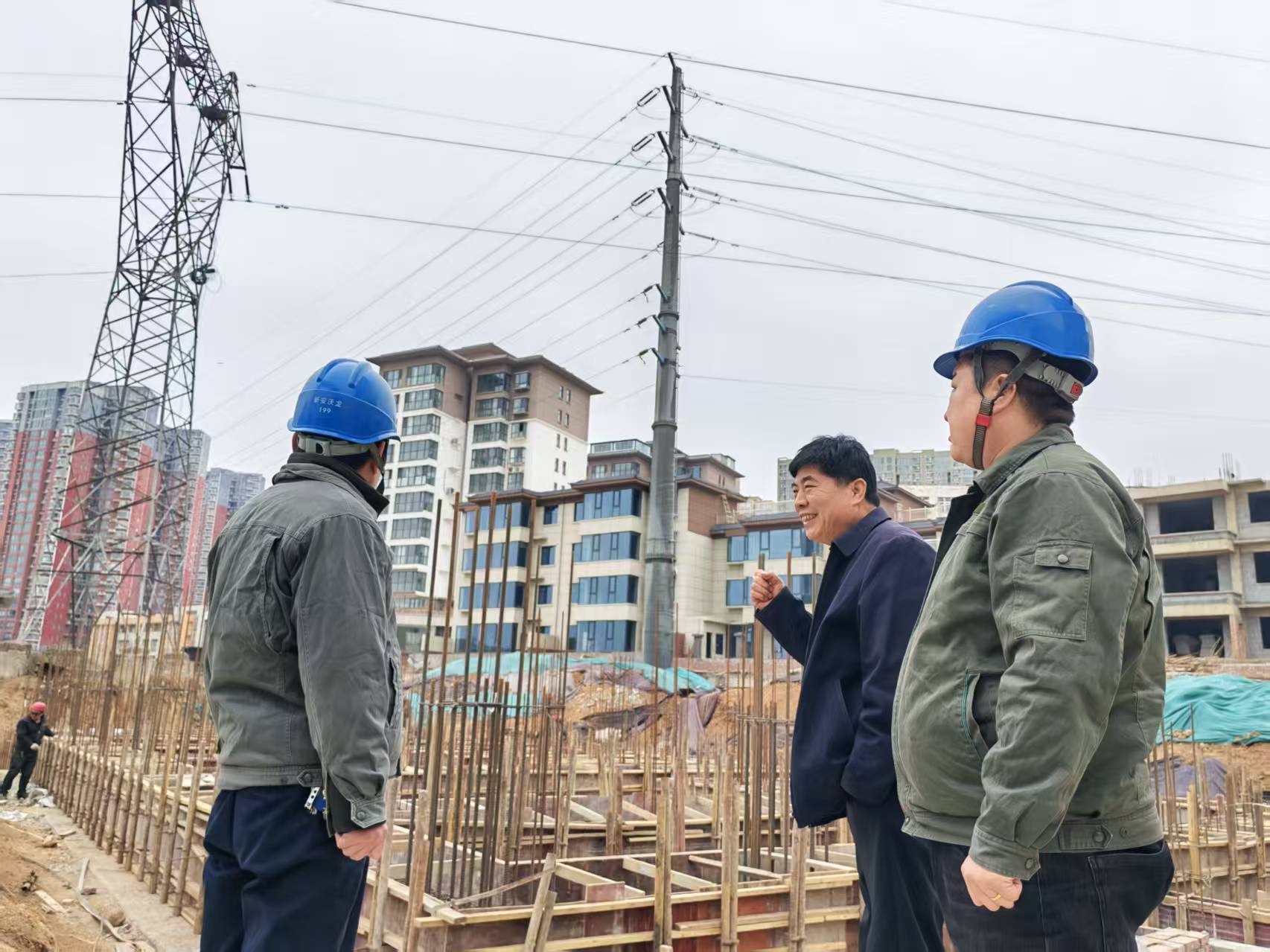 2月19日,国网新安县供电公司运维部输电线路班人员深入新安县城区新时代花园项目工地,了解施工进展情况,提醒施工方施工时压紧压实漂浮物,确保施工过程中电力设施安全。