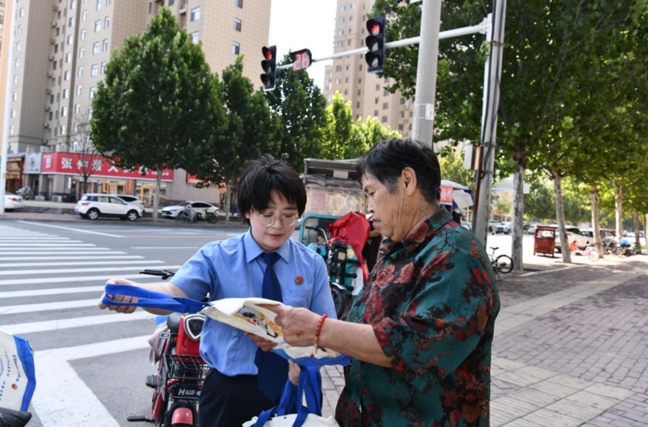 为贯彻总体国家安全观,增强全民国家安全意识和素养,夯实以新安全格局保障新发展格局的社会基础,9月20日,濮阳市华龙区检察院组织第一检察部干警在该辖区南海路与扶余路交叉口开展“全民国家安全宣传”活动。