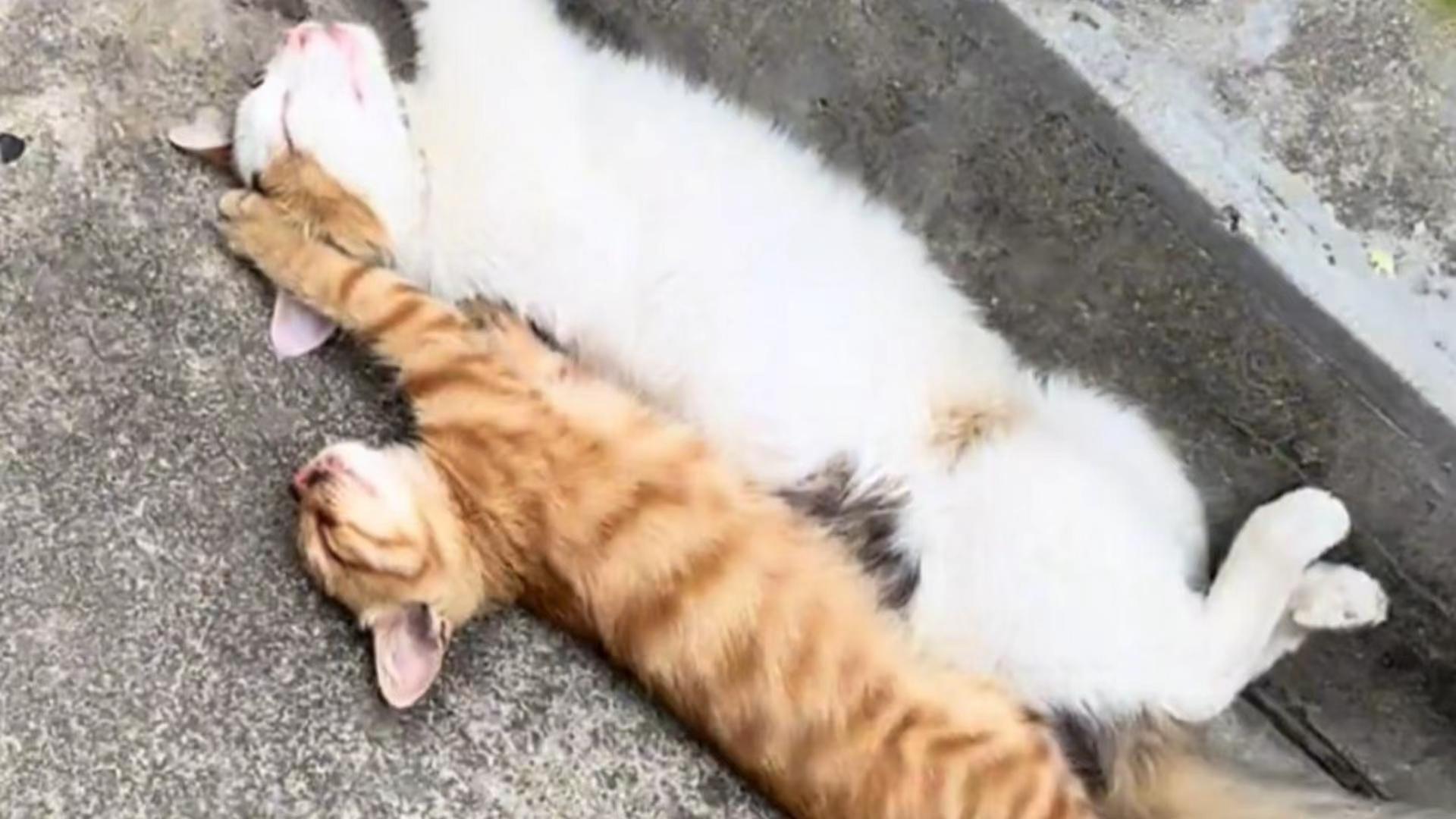 • 小猫完美复刻妈妈睡姿,咪:学妈妈睡得香一点