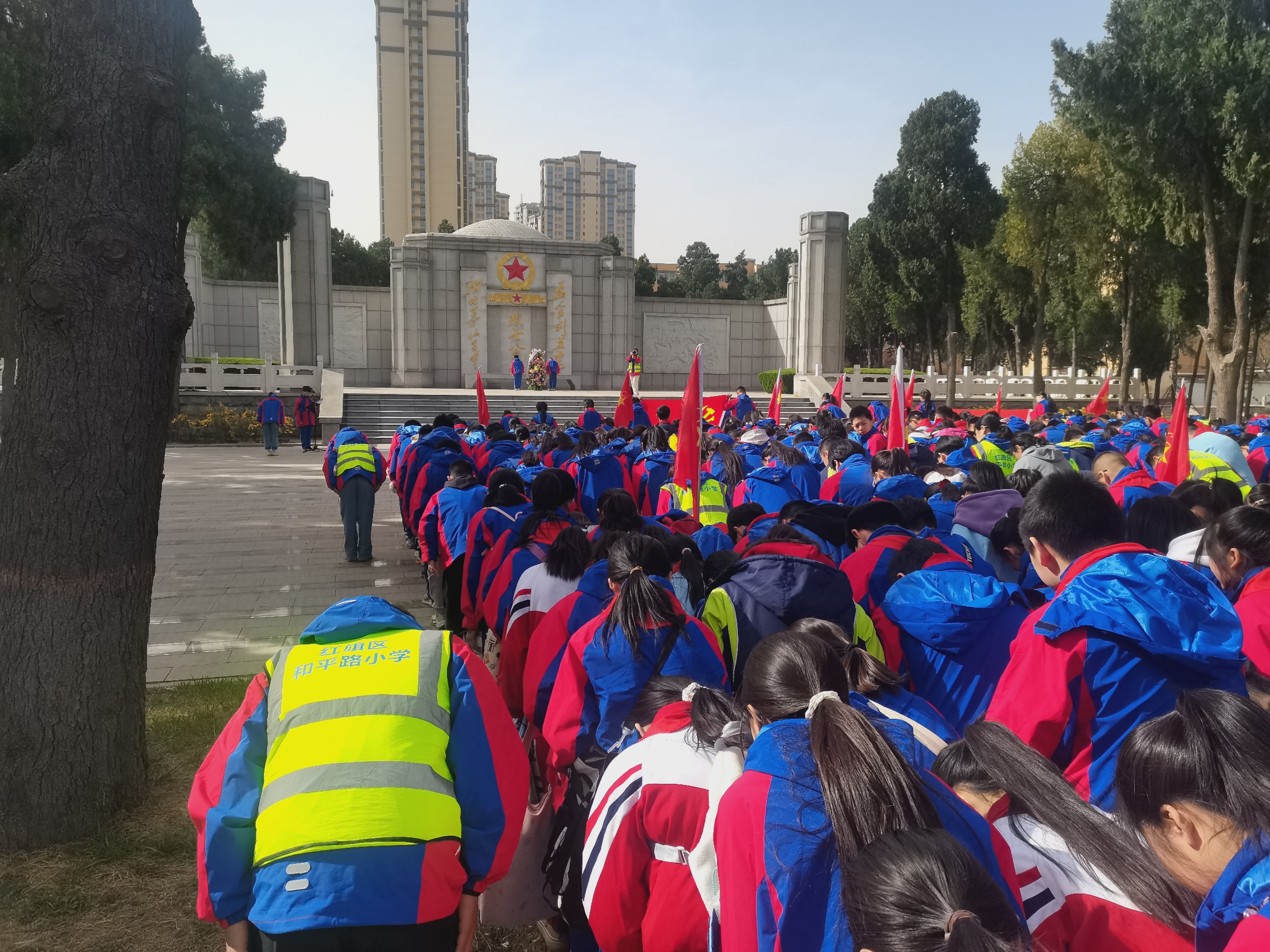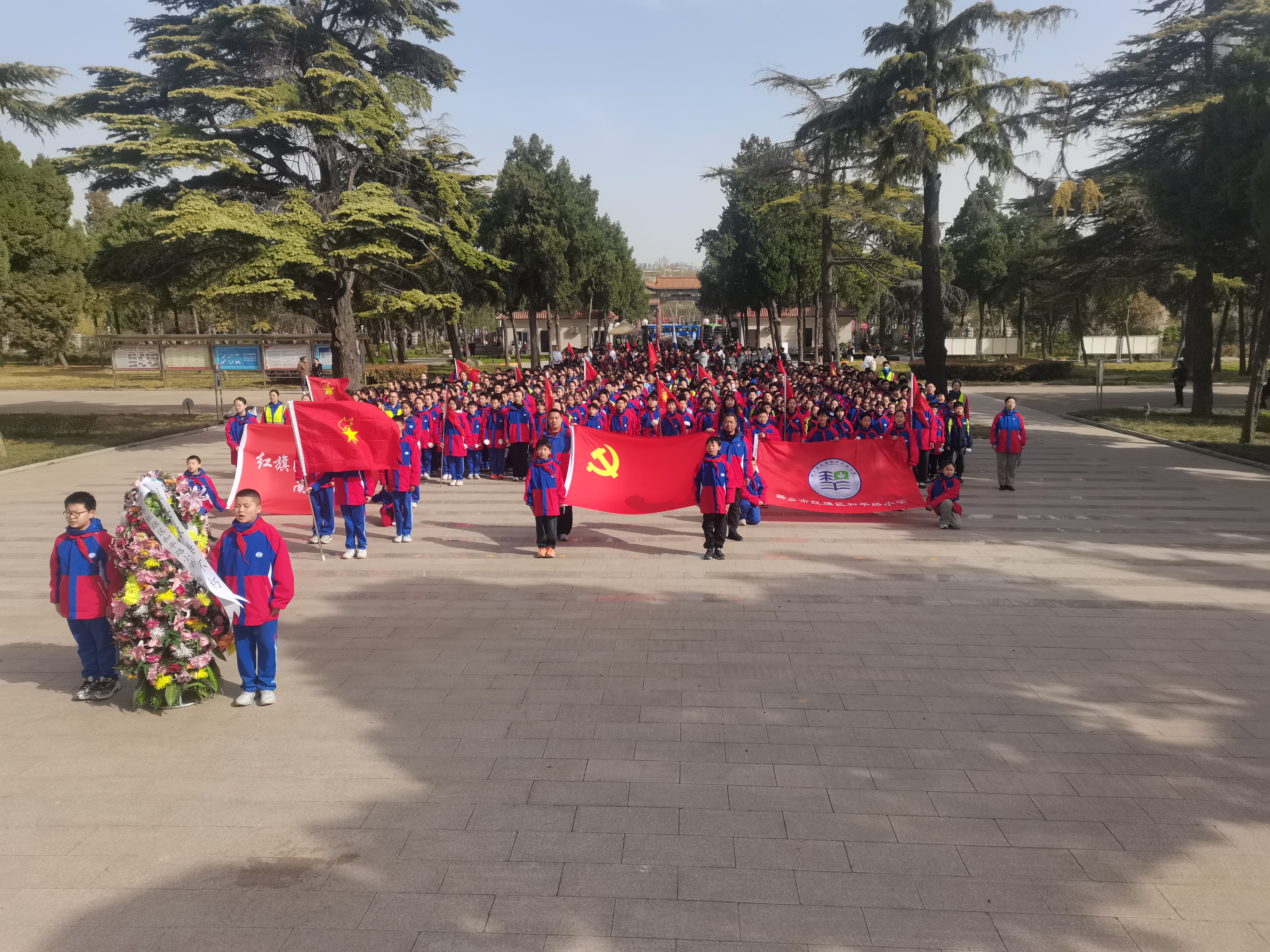 3月28日上午,红旗区和平教育集团组织本部五年级全体师生及洪门校区学生代表660余人,以“清明祭英烈 红色润童心”为主题开展清明节祭英烈活动,通过“行走的思政课”创新形式深化爱国主义教育。