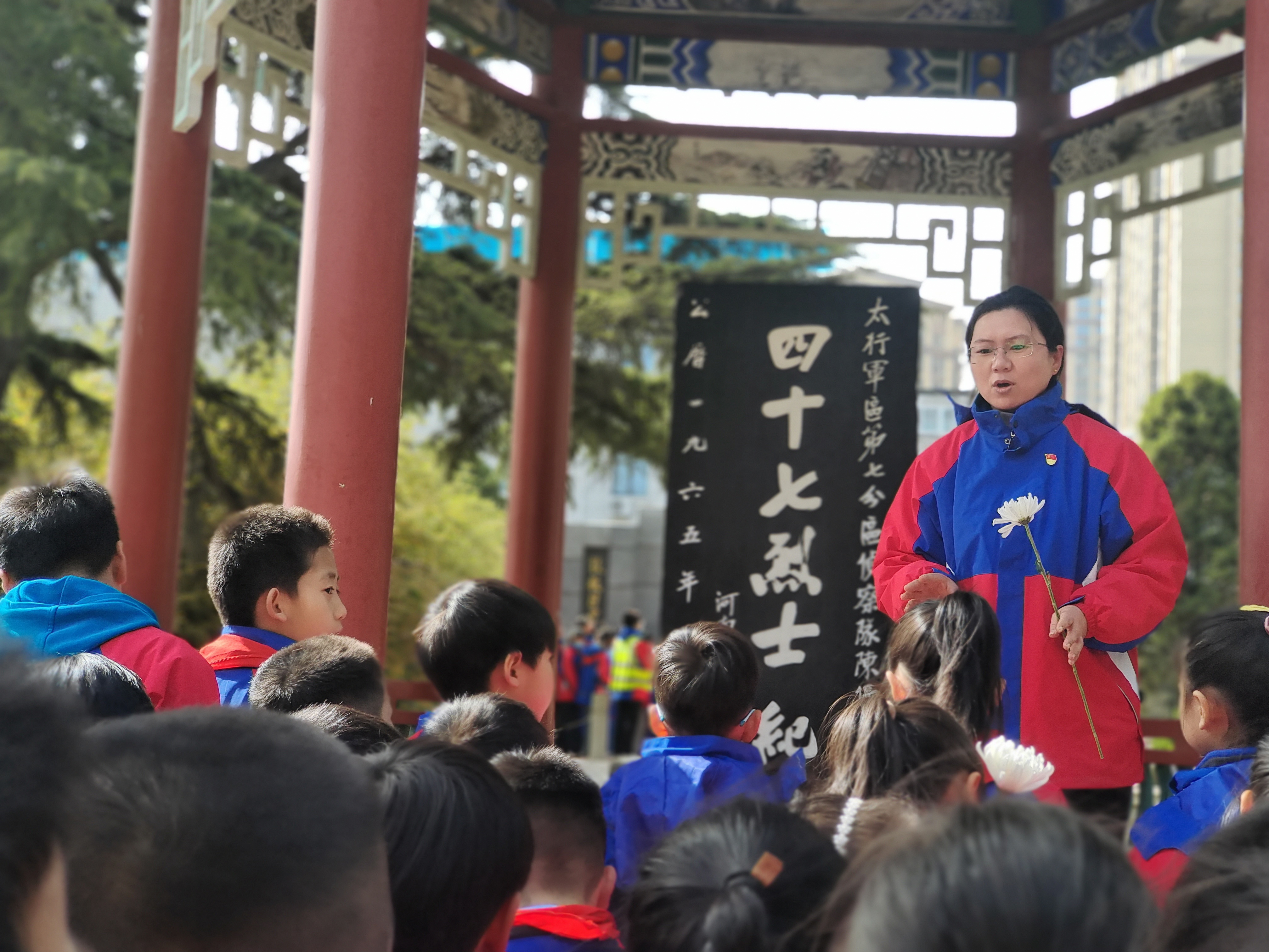 活动现场创新设立的“移动思政课堂”成为亮点,四十七烈士碑、肖思远雕塑、新乡解放纪念碑和烈士陈列馆四个教育点位同步开讲。